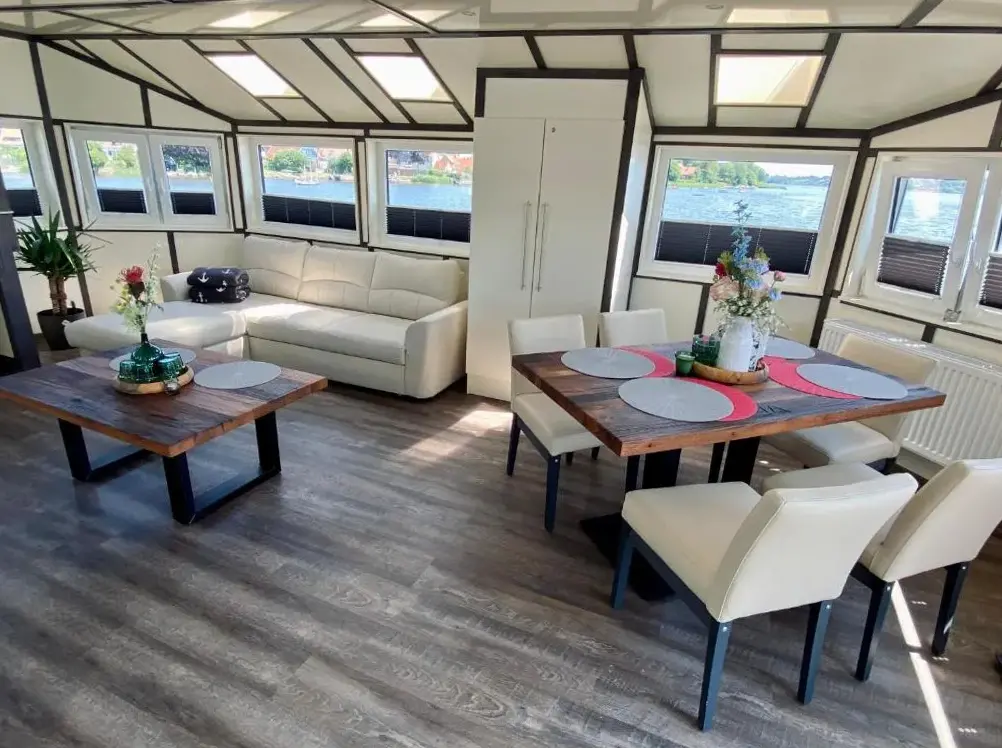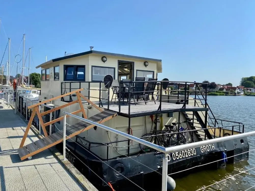 Wyspa-Dreams Hausboote Groth & Rhin położona jest w pobliżu plaży, co umożliwia bezpośredniego dostępu do morza oraz piękne widoki. Dom wakacyjny oferuje pokoje rodzinnego typu, kompletnie wyposażonej kuchni oraz prywatnej łazienki. Oferowane są dodatkowe komforty takie jak pralka, balkon czy taras. Dostępna jest darmowa przestrzeń do ładowania samochodów elektrycznych, kawiarnia, parking rowerowy oraz obszar grilowania. Obecność bezpłatnego prywatnego parkingu sprawia że miejsce jest bardzo dogodne dla gości. W pobliżu znajdują się atrakcje takie jak port Flensburg, uniwersytet Flensburg oraz możliwość uprawiania sportów wodnych i jazdy na rowerach.